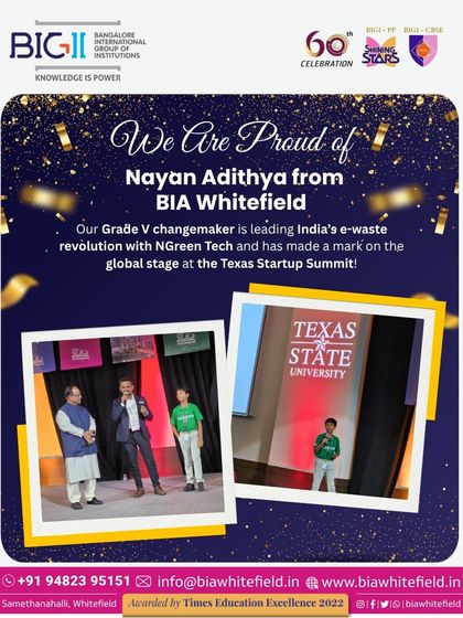We’ve been doing this for 58 years – teaching, learning, and growing together. Our campus is like a galaxy, every kid is a star. You’ll find Janani, who danced into the world record books, and Aridhya, who cracked NEET. Nayan started an e-waste project, got funding – all in Grade 5! We’re not just about books, you’ll see robotics, Cartoon Day, Kannada games, yoga on the grounds. We want kids confident, kind, and ready for anything.