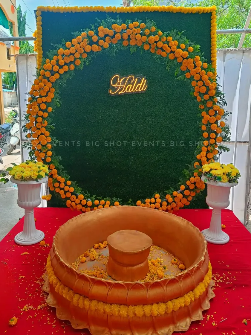 We create stunning backdrops for your Haldi ceremony, from traditional marigold arrangements to modern designs with custom props. We handle everything for both intimate home functions and larger outdoor events, ensuring a picture-perfect setting.