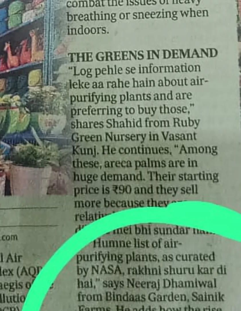 Don't just take my word for it. I am proud of my 5-star ratings and have been featured in publications like the Hindustan Times for my work in promoting green living in Delhi.