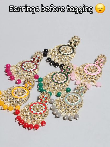 Our earrings incorporate traditional techniques like meenakari (enamel work) and kundan setting, with options for pearl embellishments and gold-plated finishes.