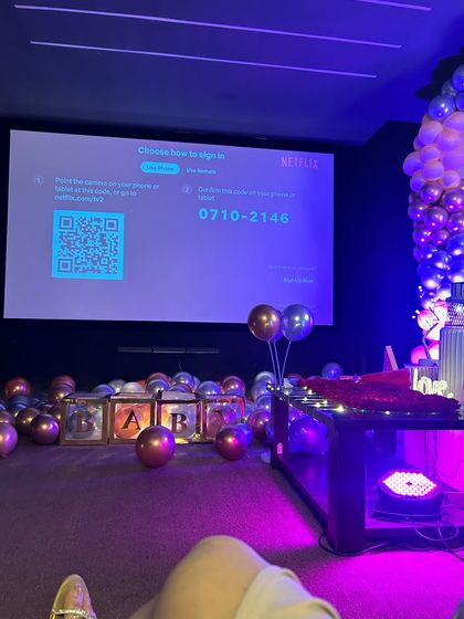 We host your party in a private theatre with big screen, sound, decor, and food, so you get full privacy and we handle all the setup.