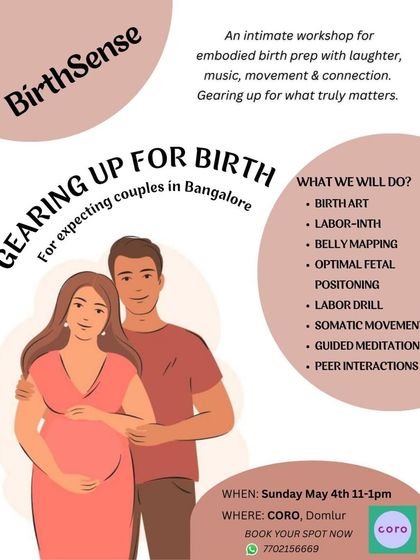 For those in Bangalore, I run creative, in-person workshops with actual movement, belly dance, ‘Birth Art’, and comfort drills. We do belly mapping, play with birth balls, and wrap up with deep guided relaxation. Groups are small, vibe is super chill.