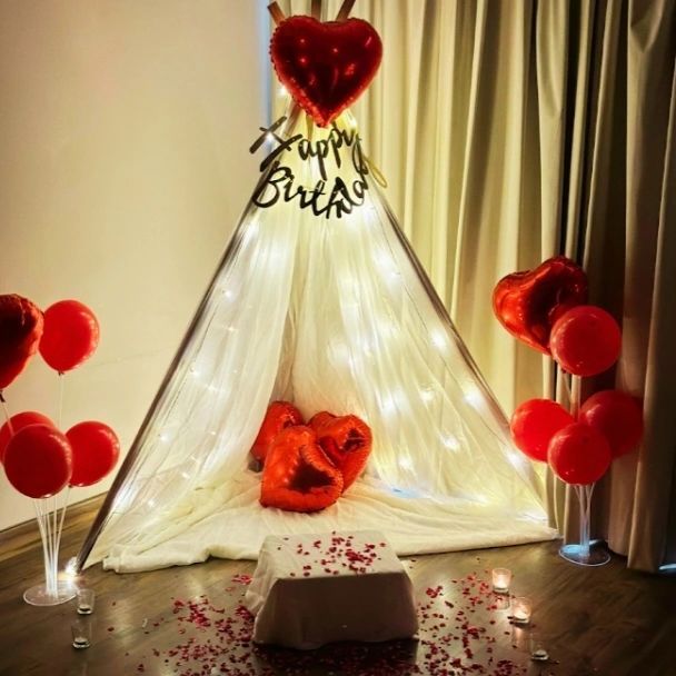 You don't need a large venue to have a beautiful celebration. We specialize in transforming your living room or bedroom into a festive space. Our services range from simple balloon arrangements and romantic canopy setups to full themed backdrops, all designed to fit your space.