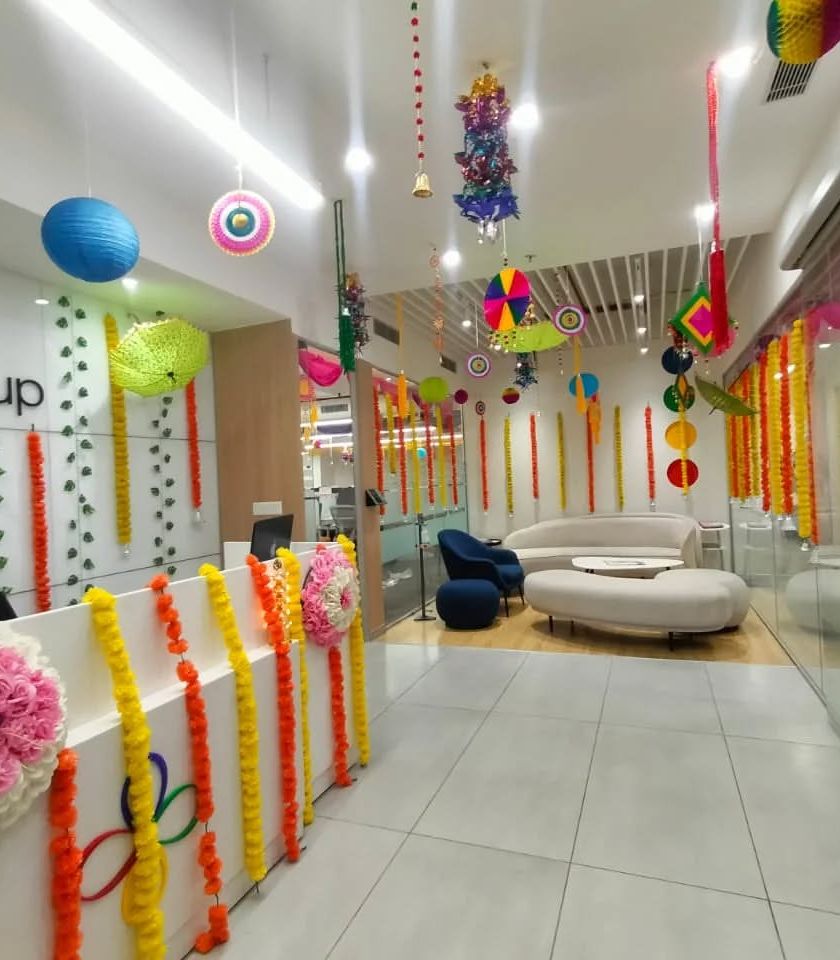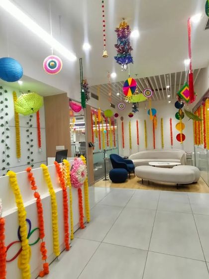 We bring festive cheer to your workspace for celebrations like Diwali, Holi, or New Year's. Our setups range from traditional decor with marigold garlands and paper crafts to vibrant and colorful balloon arrangements for party zones.