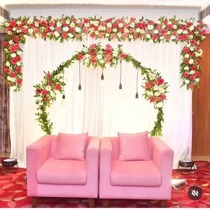 I create elegant backdrops for your engagement or Roka ceremony, perfect for home or small halls. My designs feature floral arches, custom signs, and beautiful seating arrangements to make your special announcement memorable.