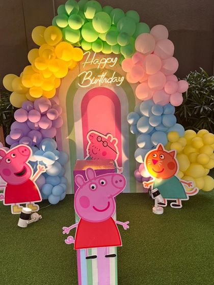I create fun-filled parties based on popular kids' shows and characters. Whether it's a Cocomelon sing-along, a Peppa Pig party, or a Baby Shark adventure, I use colorful balloon arrangements, themed backdrops, and character cutouts to make the celebration special.