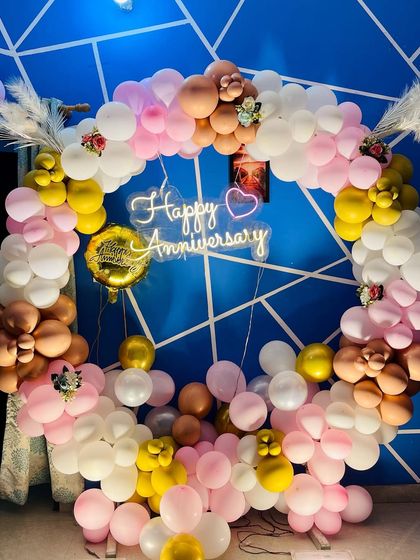 I design personalized backdrops and balloon arrangements to celebrate your special milestones. I can create circular arches, full balloon walls, and incorporate light-up marquee numbers or neon signs for any birthday or anniversary.