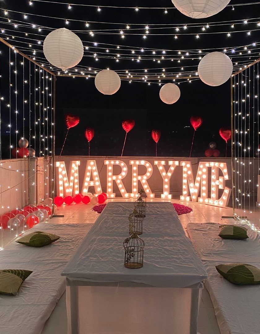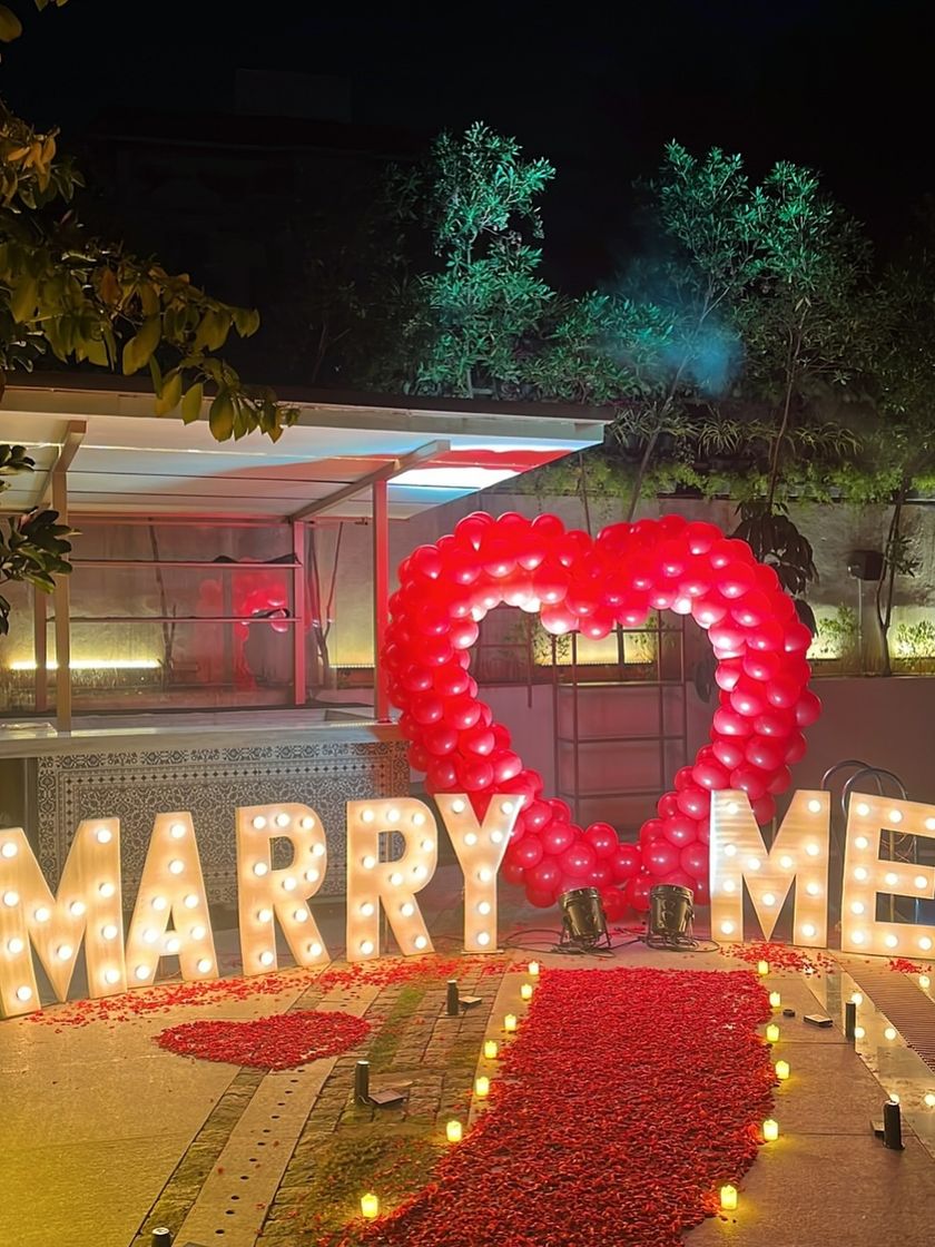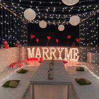 I create unforgettable proposal moments with large marquee letters, custom lighting, and dramatic backdrops. Whether by a pool or on a private terrace, I handle every detail to ensure a perfect "yes".