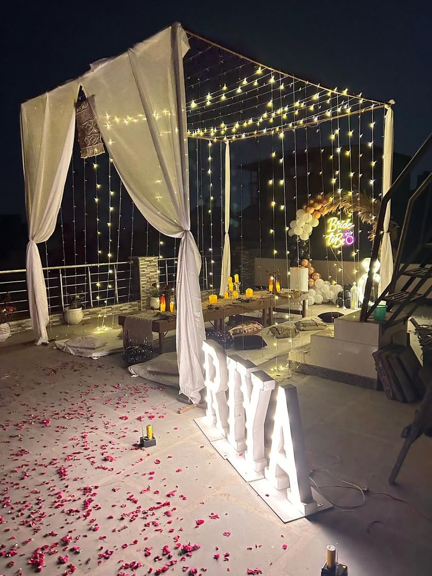 I specialize in transforming rooftops and terraces into private, romantic escapes. Setups often include cabanas with fairy lights, low seating arrangements, and themed decor for any special occasion.