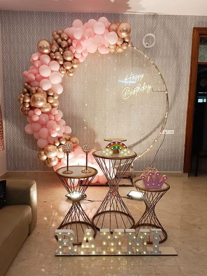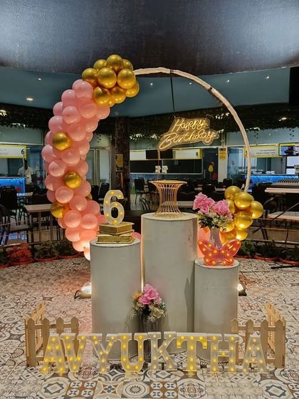 I decorate social and corporate events in Bengaluru with balloons, flowers, custom backdrops, and lighting, matching your theme and venue needs.