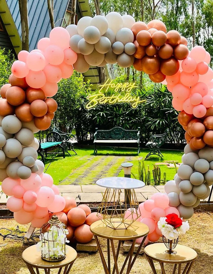I design sophisticated backdrops for milestone birthdays, anniversaries, and other special occasions. These setups often feature circular ring frames, custom arches, and shimmering sequin walls, personalized with neon signs, marquee numbers, and elegant balloon color palettes.