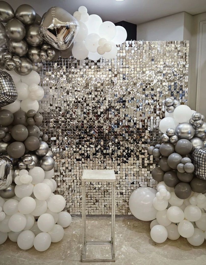 For adults, milestone celebrations, or anyone wanting a touch of glamour, my elegant backdrops are the perfect choice. I use shimmer walls, sophisticated color palettes like black and gold or rose gold and silver, and neon signs to create a chic photo zone. These setups are perfect for making any birthday party feel like a VIP event.