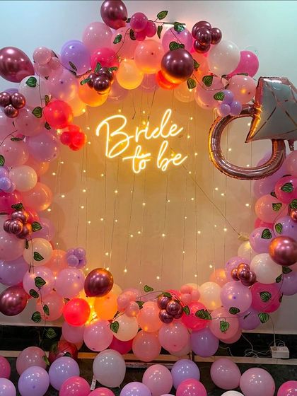 We create the perfect Insta-worthy backdrops for your bridal party. Our signature ring setup comes with a "Bride to be" neon sign, a diamond ring foil balloon, and custom balloon garlands in your chosen colors.