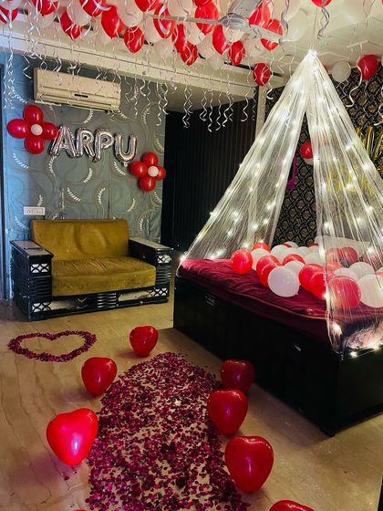I'll turn your bedroom into a private romantic haven for any occasion, from Valentine's Day to your first night as a married couple. I use fairy light canopies, rose petal arrangements, and balloon decor to create a truly special atmosphere.