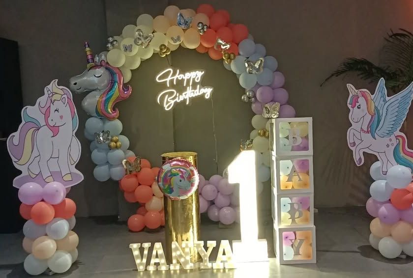 For a touch of magic and whimsy, my unicorn and butterfly themes are perfect. I use pastel rainbow palettes, shimmering details, and enchanting character cutouts to create a fairytale setting for your little one's special day.