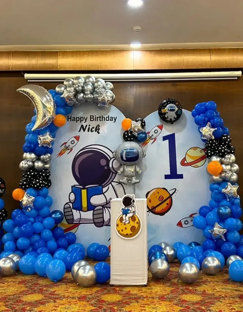 This is a fantastic theme for adventurous little ones. I create immersive space-themed parties using shades of blue, black, and silver, along with planets, rockets, and astronaut props to make your child's birthday feel like a journey through the galaxy.