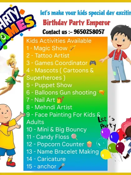 - You can pick from a kids magic show, puppet acts, and even a cartoon mascot appearance. The kids love when Chota Bheem or Spider-Man walks in, and honestly, adults get a kick out of it too.