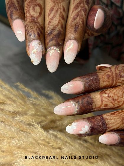 We do custom hand-painted nail art with advanced Russian manicure, trending finishes like chrome and 3D, and offer aftercare for nail health.