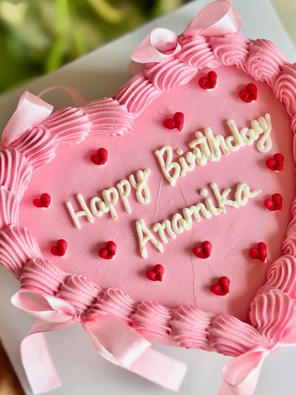 Cakes shaped like your heart feels. I create custom heart-shaped designs for anniversaries, Valentine's, or just because, from fresh berry toppings to cute character illustrations and chic ribbon details.