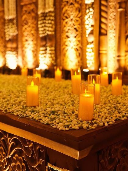 We specialize in creating wedding experiences that beautifully blend traditional elements with modern aesthetics. Our expertise includes incorporating cultural symbols like Lord Ganesha statues crafted from ghungroos and designing regal South Indian weddings.