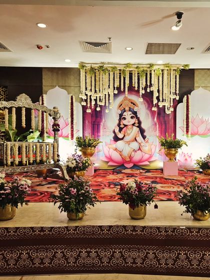 I create beautiful setups for sacred events like naming ceremonies, cradle ceremonies, and birthdays with a divine touch. I can design themes around deities like Krishna and Lakshmi or create elegant decor that respects your family's traditions.