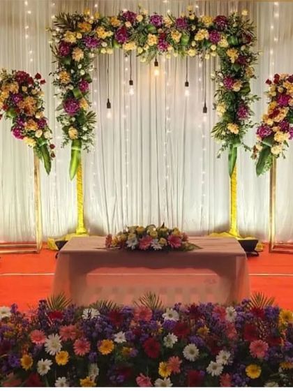 Modern & Traditional Decor - We do traditional marigold decor for Haldi, and also trendy stuff like glitter wall event decoration, neon signs, and cozy dinner setups.