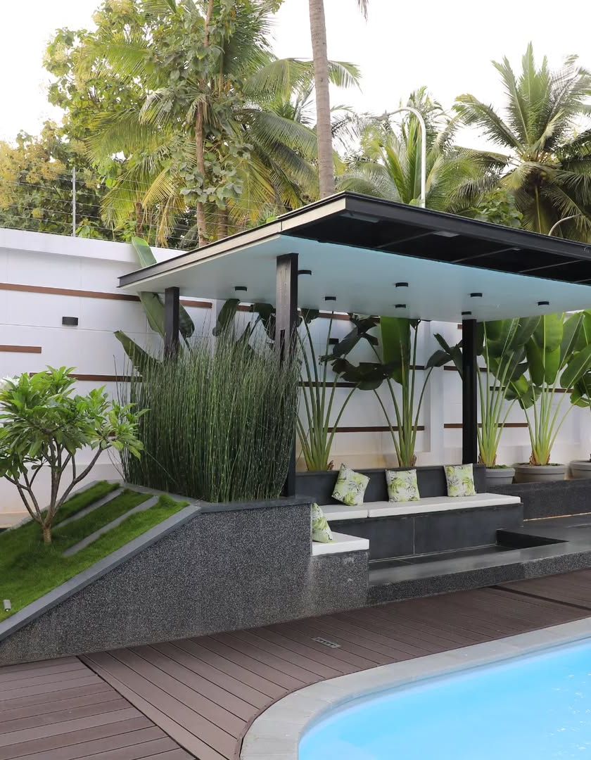 I design and build functional outdoor rooms, not just gardens. This includes poolside lounges, gazebos for shade, and pergolas that become living structures, extending your home into nature.