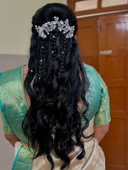 I specialize in creating elegant bridal hairstyles that complement traditional Indian weddings. My expertise includes intricate braiding techniques, sophisticated updos, and decorative styling using flowers and accessories.