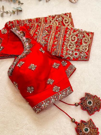Custom Blouses & Sarees - We design hand-embroidered blouses for weddings, muhurthams, and special occasions. Saree curation is part of our Six Yard Project.