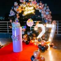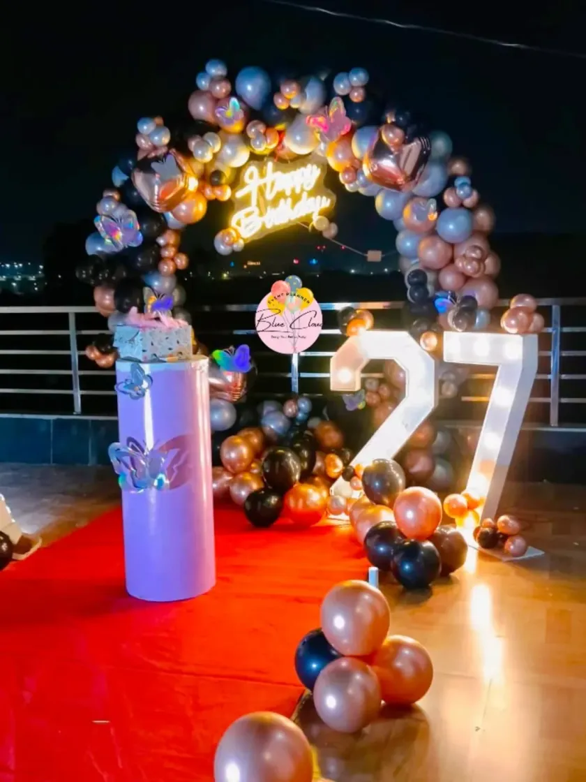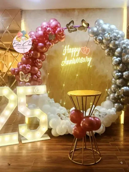 I can transform any venue, big or small, with stunning balloon decorations. This includes grand entrance arches, elegant table centerpieces, and ceiling decor to create a complete party atmosphere.