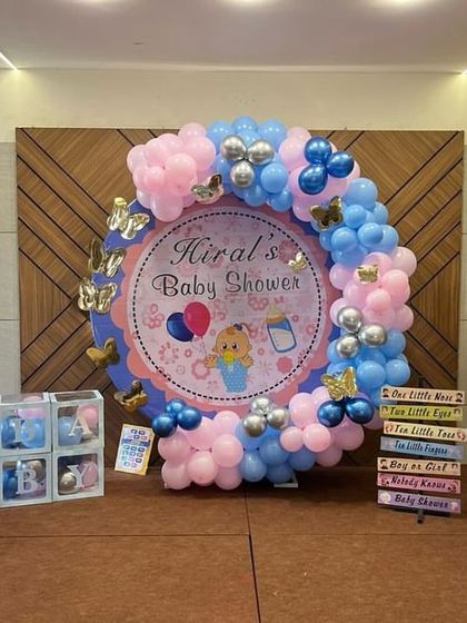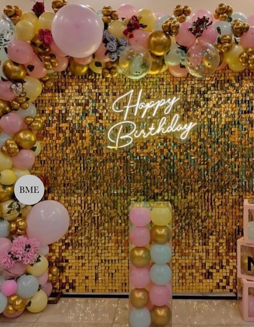 I design fun and festive decorations for birthdays, baby showers, and other parties. My services include creating stunning balloon arches, themed backdrops with sequin panels and neon signs, and personalized elements like 'BABY' boxes or custom name displays.