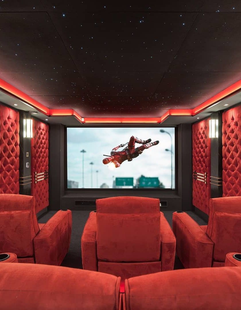 Explore our portfolio of contemporary home cinemas, defined by clean lines, bold geometric patterns, and innovative LED lighting. These spaces are engineered with advanced acoustic treatments for a powerful, cutting-edge performance.