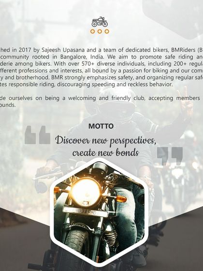 We are built on a foundation of safe and responsible riding. This section includes our official mission and vision, along with practical BMR Moto Tips on everything from gear and maintenance to road awareness, ensuring every ride is a safe one.
