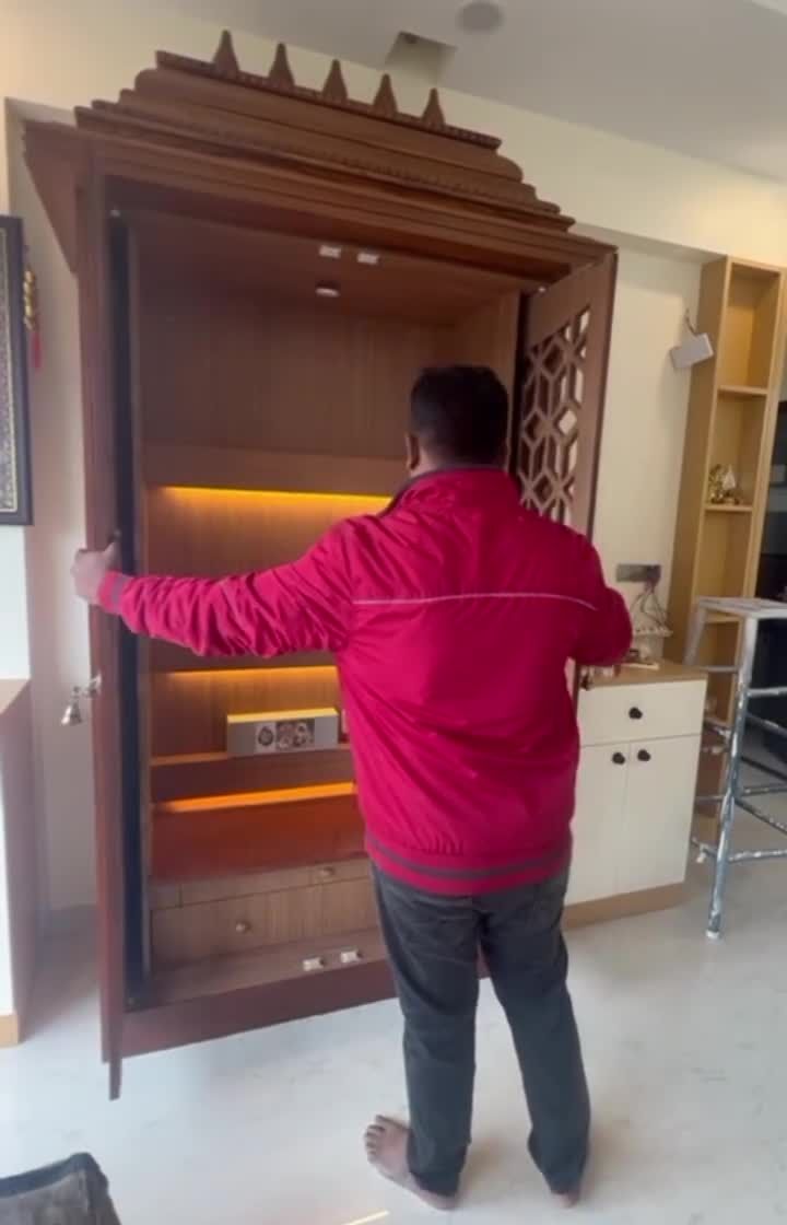 We understand the importance of having a dedicated space for prayer and reflection. We design and craft beautiful pooja units that blend traditional motifs with contemporary design. Our mandirs are customized to fit your space and needs, featuring elements like intricate jali work, bells, integrated lighting, and storage for pooja essentials.
