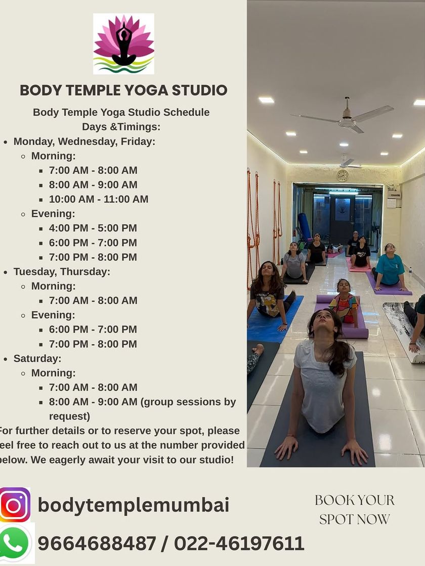 Here you can find all the practical information you need to start your journey with us. Check out our class schedules, contact details, and the different types of yoga we offer.