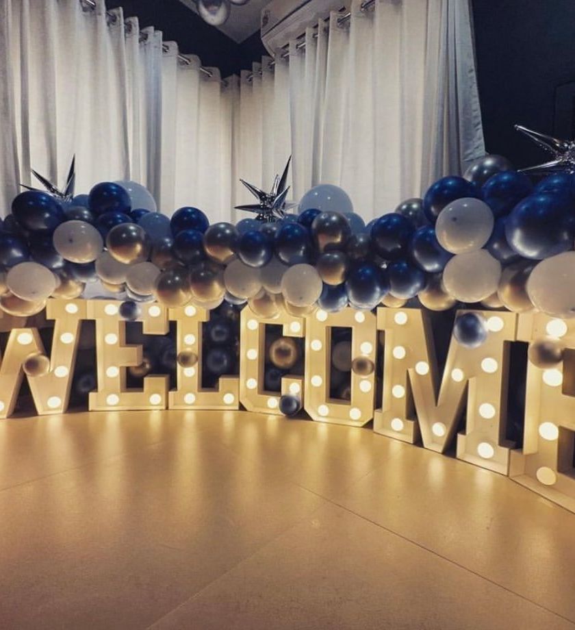 We create memorable first impressions for your celebration. This includes personalized welcome signs with balloon arches for baby showers and stunning decor for a newborn's welcome home party, from marquee letters to fairytale themes.
