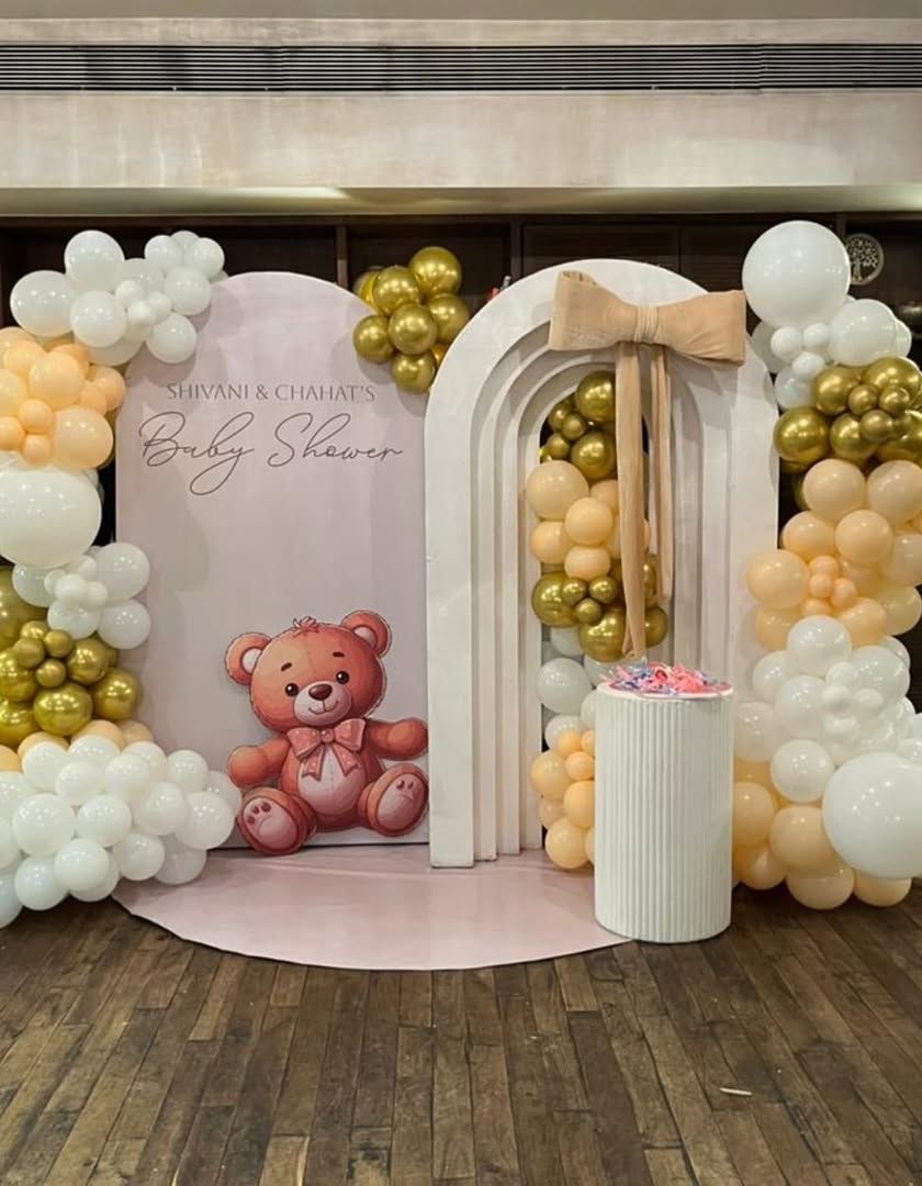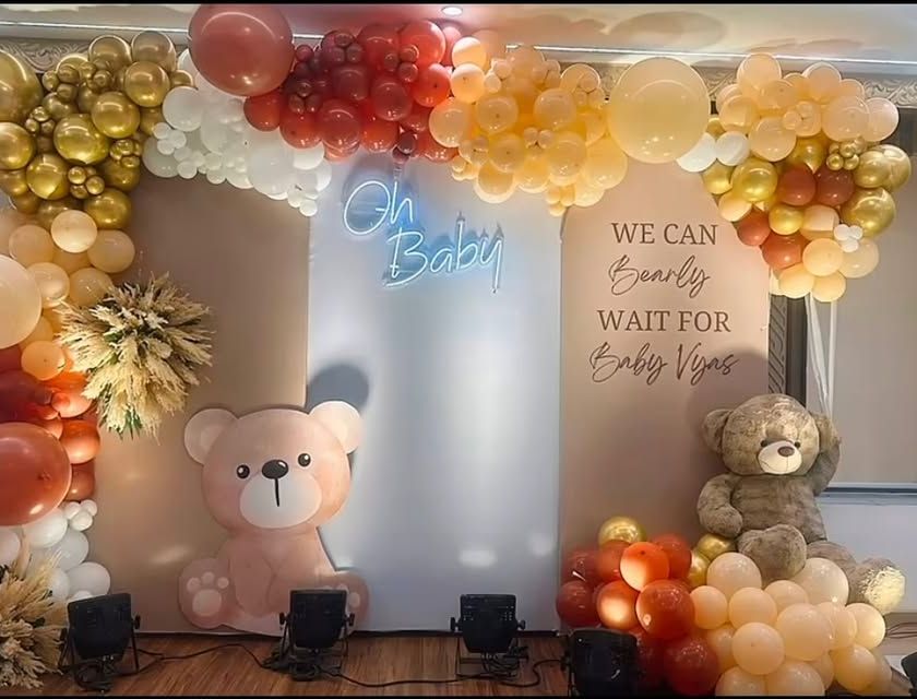 This is one of our most requested themes for baby showers. We create cozy and cute setups using teddy bear props, custom backdrops, and organic balloon garlands in various color palettes like neutral, pastel, or bold combinations.