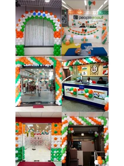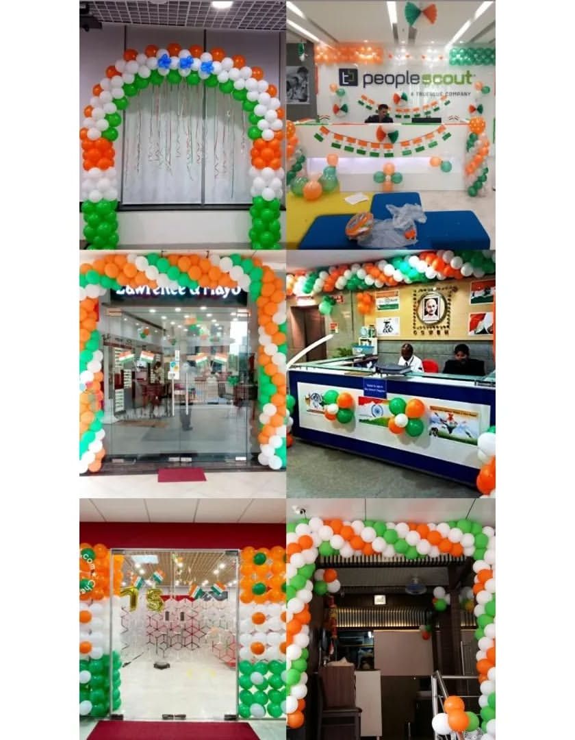I provide decor for Independence Day and Republic Day to help you celebrate with pride. I create balloon arches, pillars, and other arrangements in the tricolor theme for offices, shops, cafes, and societies.