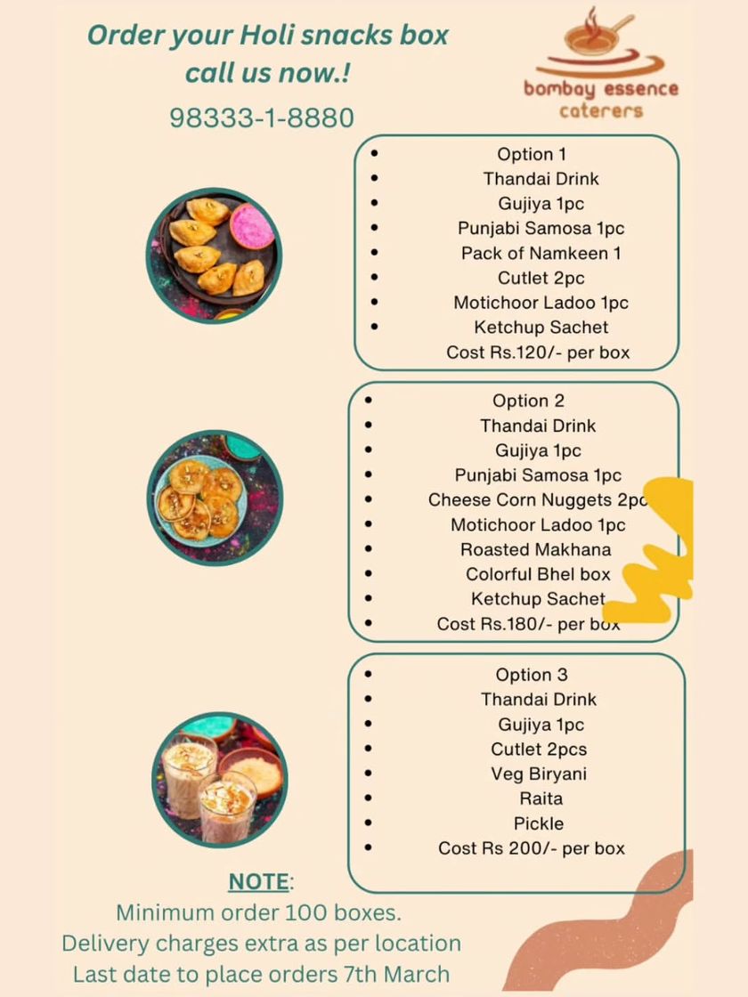 We offer a variety of packed snack boxes perfect for meetings, society events, or any occasion requiring easy distribution. Choose from traditional Indian snacks like vada pav and dhokla or options like sandwiches and puffs, all customizable to your needs.
