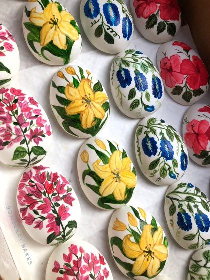 I consider myself a cake artist, and this is where I showcase my freehand painting and detailed sugarcraft. From hand-painted marzipan eggs to intricate designs inspired by traditional art, these details make your cake a true work of art.