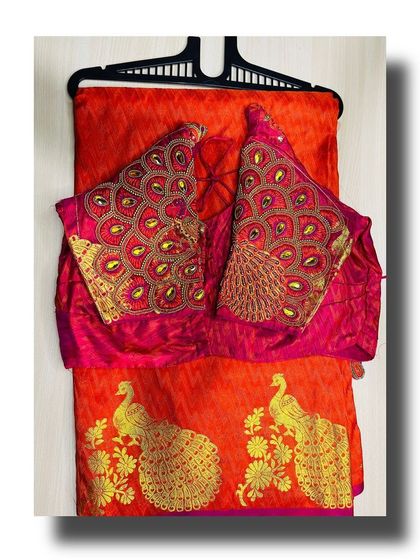 My rental collection includes over 60 traditional silk sarees, each paired with a unique designer blouse so you don't have to worry about stitching. I have blouses with heavy handwork, intricate embroidery, and modern back designs.