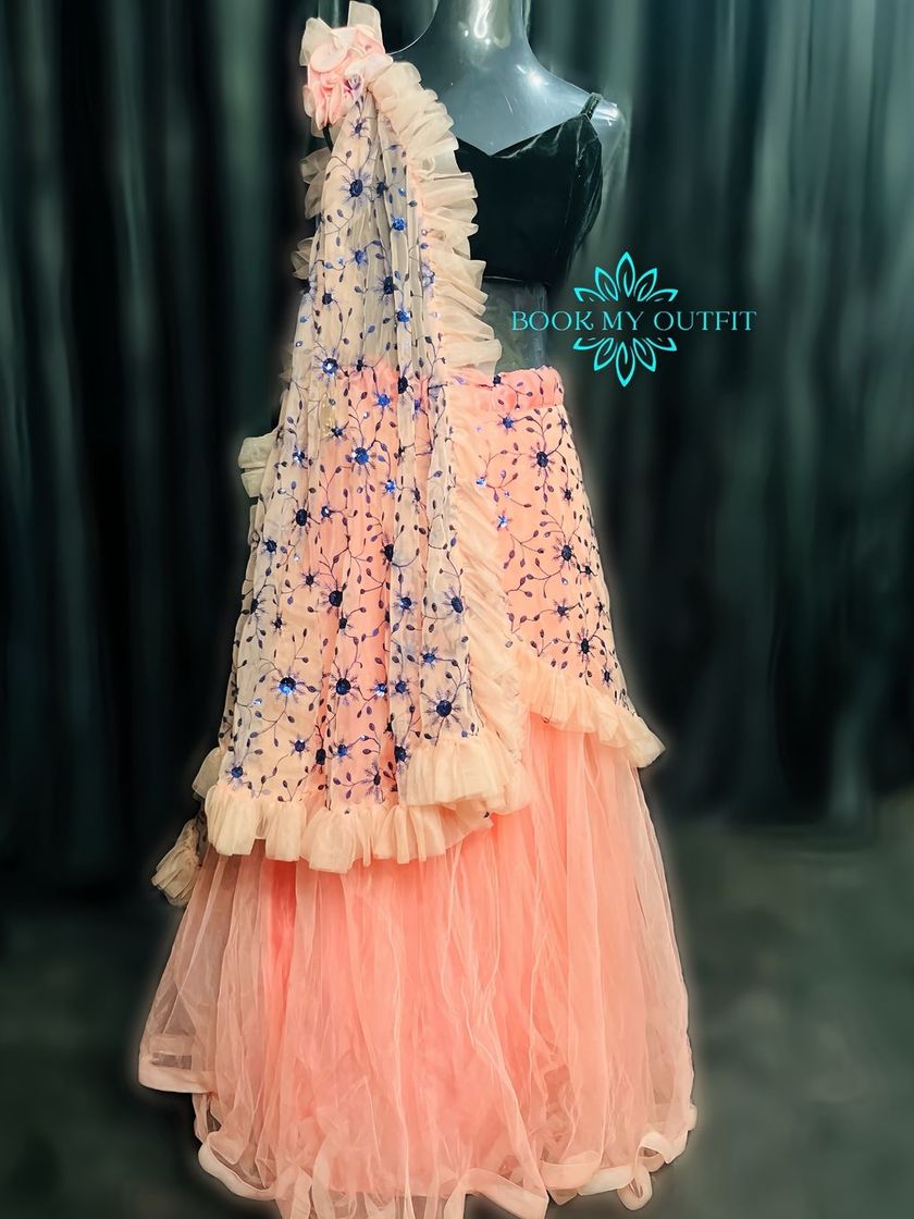 Browse a range of modern lehengas, gowns, and fancy sarees perfect for receptions, sangeets, and parties. This collection includes trendy designs like ruffled sarees and contemporary lehengas with unique blouses.