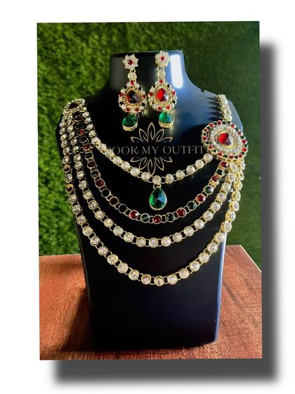 - Bridal jewelry on rent: Heavy, layered necklaces, chokers, maang tikkas, all with that shaadi-wala vibe. Gold tones, colorful stones, sets that stand out in wedding photos.