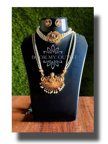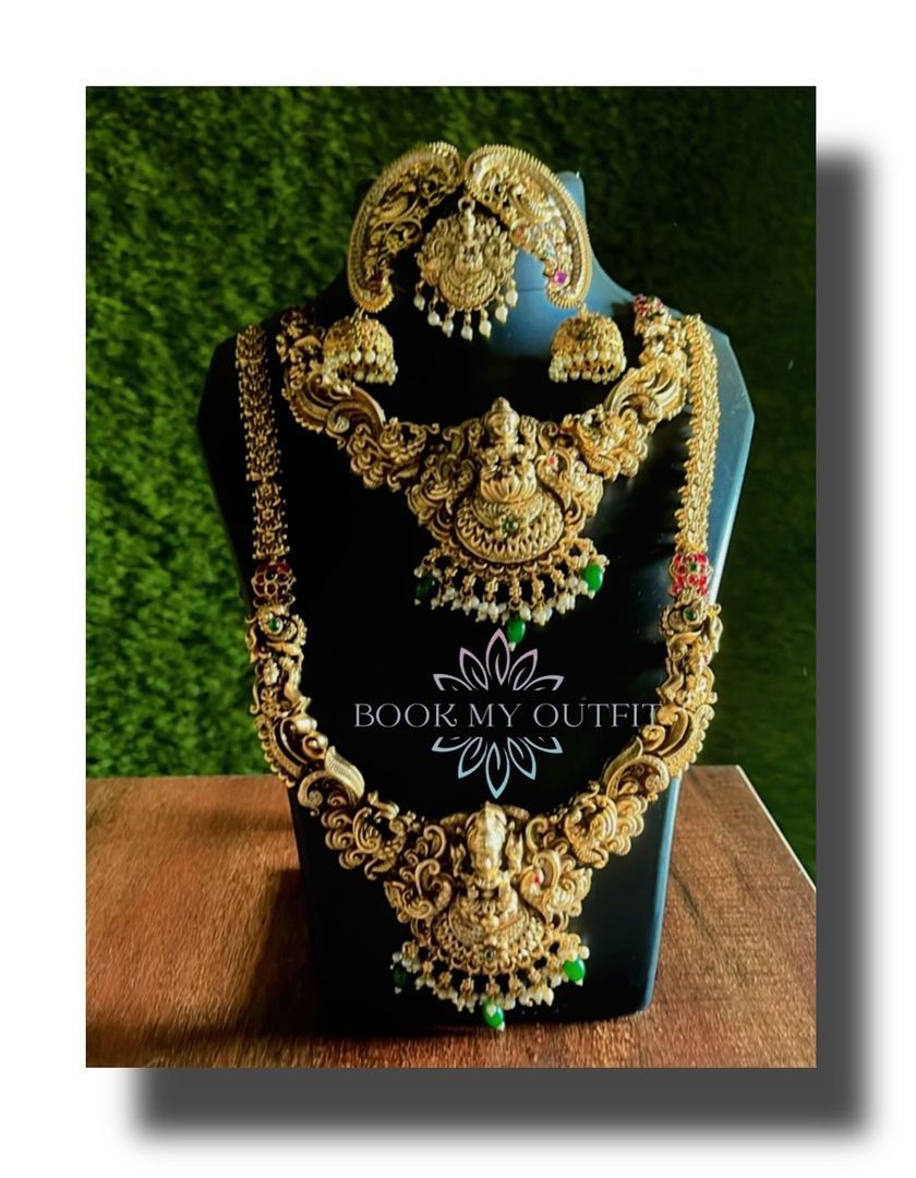 My temple jewelry collection is perfect for religious ceremonies, festivals, or achieving a classic South Indian look. These pieces feature goddess motifs like Lakshmi, antique gold finishes, and designs that pair beautifully with traditional silk sarees.