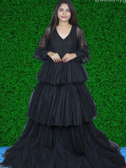 We rent designer gowns, lehengas, and short dresses for shoots and events, offer outfit customization, and bundle makeup, photography, and studio services with door delivery across Bangalore.