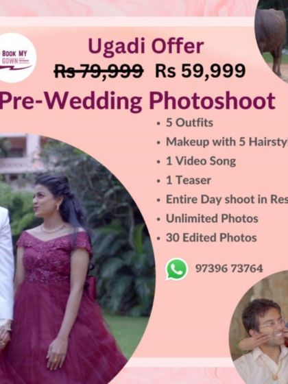 - Pre-wedding: Full day at gorgeous resorts, all-inclusive photoshoot experience, even a video song for memories.