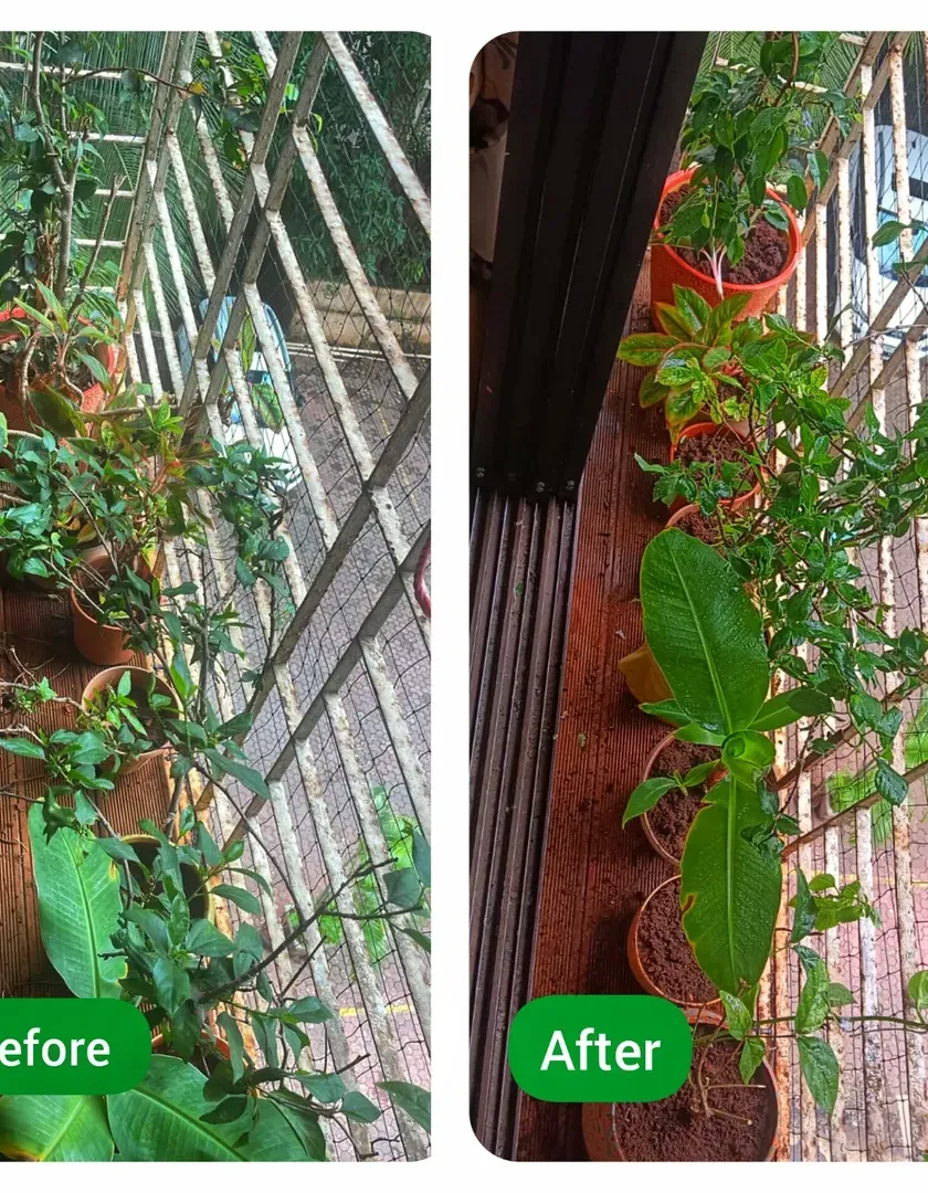 See the real impact of our maintenance service. We bring tired, neglected plants back to life, making your green spaces lush and healthy again. This is the clearest proof of what our expert plant care can do for you.