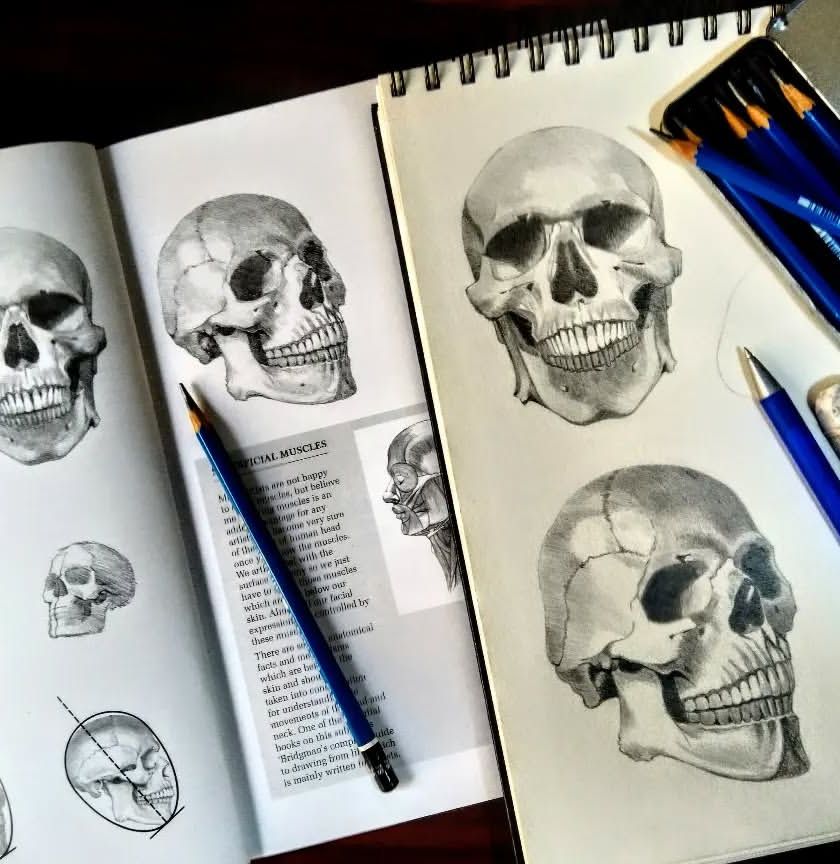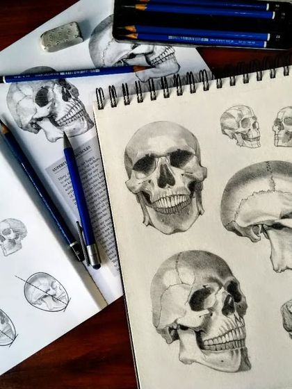 Strong artwork is built on a solid foundation of drawing skills. This collection includes my practice sketches, from anatomical studies of skulls and hands to quick object drawings, done in various mediums like pencil, ballpoint pen, and markers.