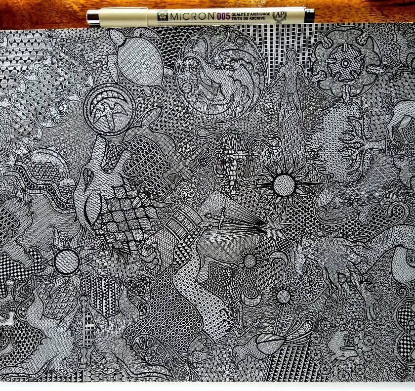 I create detailed mandala and zentangle art using fine-liner pens. These meditative pieces range from small, simple motifs to large, complex compositions, and can be personalized to suit your aesthetic or symbolic preferences.