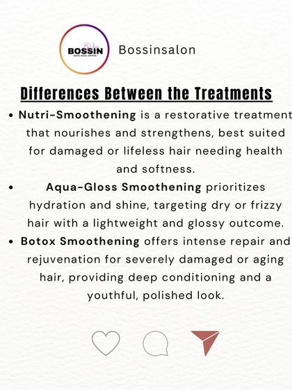 For hair that's dull, dehydrated, or just needs a boost of shine, these are my go-to treatments. Aqua-Gloss focuses on intense moisture for a 'liquid silk' look, while Nutri-Smoothening uses vitamins and proteins to repair and soften hair from within.